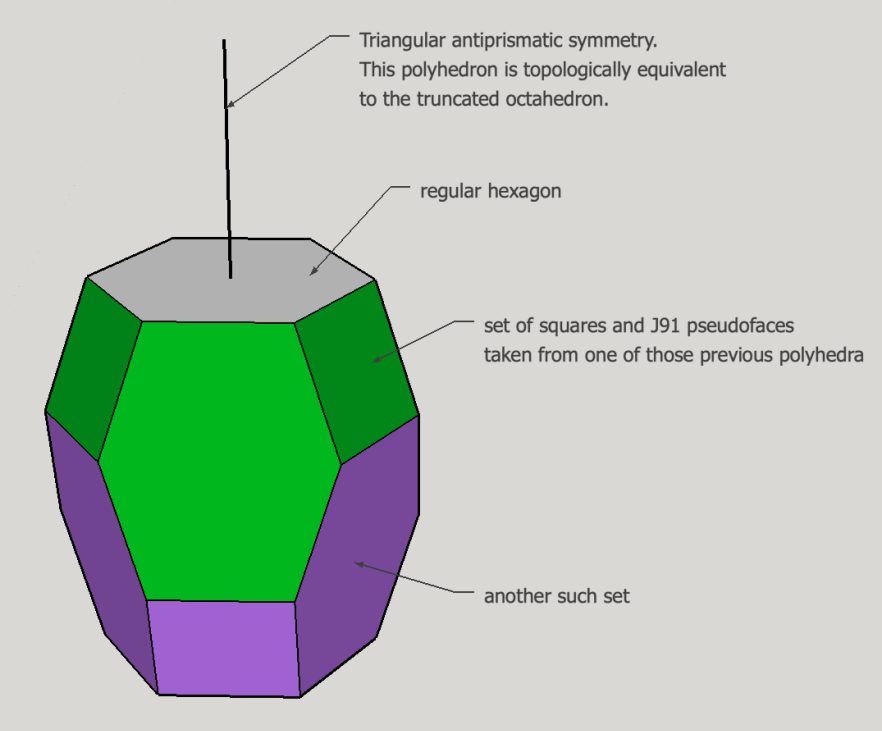 Despite of being derived from the doe, the total combinatorics of this polyhedron turns out to be the same as that of toe; in fact, as such it is just a toe variant!