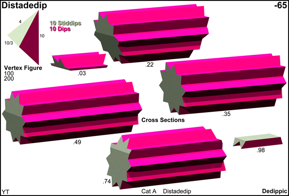 x10o x10/3o . . . . | 100 | 2 2 | 1 4 1 | 2 2 ------------+-----+---------+-----------+------ x . . . | 2 | 100 * | 1 2 0 | 2 1 . . x . | 2 | * 100 | 0 2 1 | 1 2 ------------+-----+---------+-----------+------ x10o . . | 10 | 10 0 | 10 * * | 2 0 x . x . | 4 | 2 2 | * 100 * | 1 1 . . x10/3o | 10 | 0 10 | * * 10 | 0 2 ------------+-----+---------+-----------+------ x10o x . ♦ 20 | 20 10 | 2 10 0 | 10 * x . x10/3o ♦ 20 | 10 20 | 0 10 2 | * 10