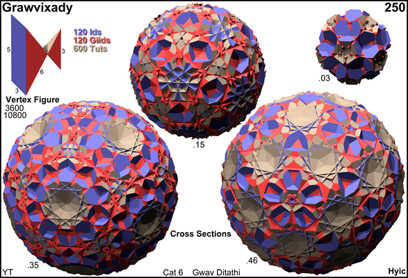 As abstract polytope grawvixady is isomorphic to swavixady, thereby replacing pentagons by pentagrams, respectively id by gid and giid by siid. – As such grawvixady is a lieutenant.