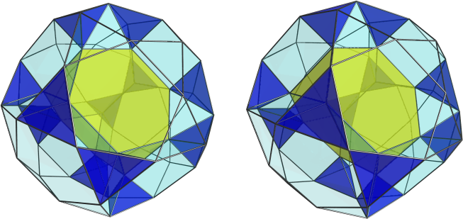 The 3 medial vertex layers F3o3x, x3x3f, and o3F3o, together with connecting edges and faces, form a skew dissectioning surface. (That one is shown in the above pictures at outline of the near resp. far half.) It is interesting, that still there is a completely different continuation beyond known as well, which uses in that half thawro cells too, but then in opposite orientation: oxFxofx3xfoxFxo3ooxfooo&#xt.