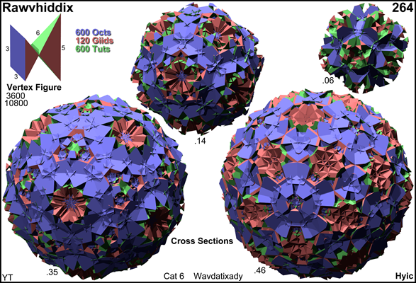 As abstract polytope rawvhiddix is isomorphic to wavhiddix, thereby replacing pentagons by pentagrams, respectively giid by siid. – As such rawvhiddix is a lieutenant.