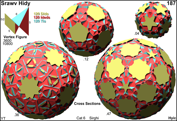 o5x3x5o5/3*b . . . . | 3600 | 4 2 | 2 4 2 1 | 2 1 2 -------------+------+-----------+--------------------+------------ . x . . | 2 | 7200 * | 1 1 1 0 | 1 1 1 . . x . | 2 | * 3600 | 0 2 0 1 | 1 0 2 -------------+------+-----------+--------------------+------------ o5x . . | 5 | 5 0 | 1440 * * * | 1 1 0 . x3x . | 6 | 3 3 | * 2400 * * | 1 0 1 . x . o5/3*b | 5 | 5 0 | * * 1440 * | 0 1 1 . . x5o | 5 | 0 5 | * * * 720 | 0 0 2 -------------+------+-----------+--------------------+------------ o5x3x . ♦ 60 | 60 30 | 12 20 0 0 | 120 * * o5x . o5/3*b ♦ 30 | 60 0 | 12 0 12 0 | * 120 * . x3x5o5/3*b ♦ 60 | 60 60 | 0 20 12 12 | * * 120
