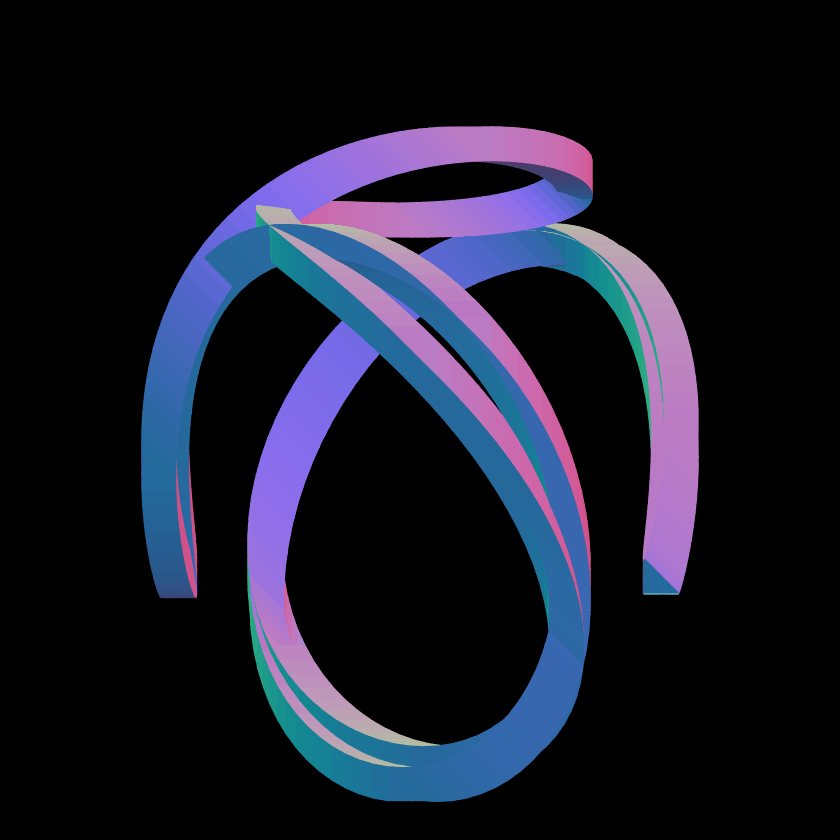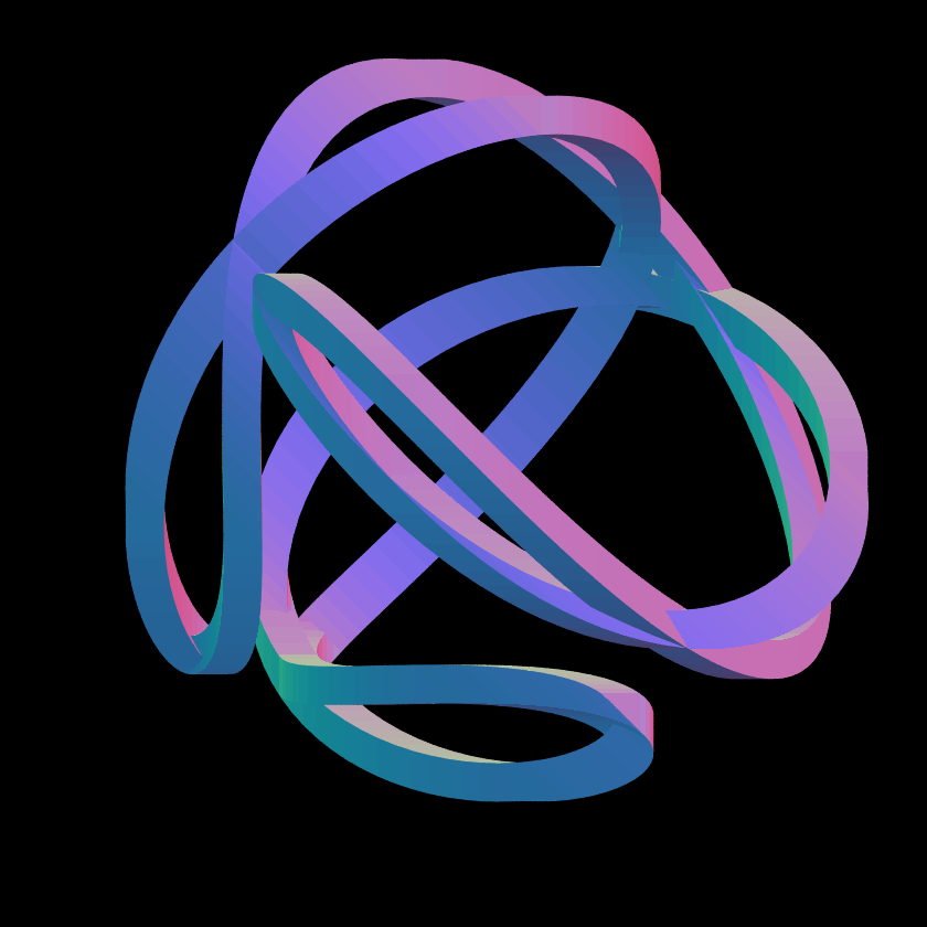 I made models of the six N=4 cases (and tried to put them on Thingiverse and Thangs, but no images show up). The vertices are those of a tetrahedron, of course. I knew from the start that the corners of the path ought to be smoothed, to make it easier to follow; my favorite design so far is a Fourier series (six components) that matches the derivative at the midpoint of each edge. They look like martian game-pieces. I was surprised to find that all of them have u-turns.