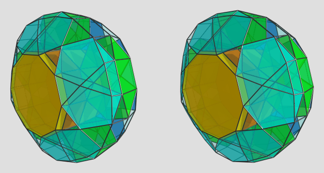 The decagonal periodic -dip-{10}-dip- ring clearly is obvious here. Then there is an orthogonal, alternating -pip-{5}-pap-gyro{5}-gyropip-gyro{5}-pap-{5}-pip- ring. And, what is quite notable, the pentagons of the bilbiroes just connect two of those each. In fact the latter ones get squeezed between those 2 orthogonal rings, while the squippies just fill in the remaining gaps. Note that it does not use any tetrahedra (nor triangular prisms or any other "usual" small stuff).
