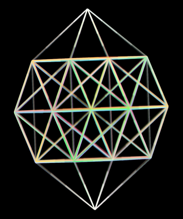 which also is shown within the right 2D projection: fy's vertices can be given in even within 4D by the overlay of those of a unit ex and a scaled one by v=(sqrt(5)-1)/2.