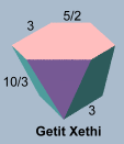 As abstract polytope getit xethi is isomorphic to stut xethi, thereby replacing the decagrams by decagons and the pentagrams by pentagons, resp. replacing the sidtid by gidtid, gaddid by saddid, and quit gissid by tid.