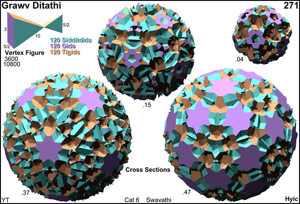 o5/2x3/2o5/2x5*b . . . . | 3600 | 4 2 | 2 2 4 1 | 1 2 2 -----------------+------+-----------+--------------------+------------ . x . . | 2 | 7200 * | 1 1 1 0 | 1 1 1 . . . x | 2 | * 3600 | 0 0 2 1 | 0 1 2 -----------------+------+-----------+--------------------+------------ o5/2x . . | 5 | 5 0 | 1440 * * * | 1 1 0 . x3/2o . | 3 | 3 0 | * 2400 * * | 1 0 1 . x . x5*b | 10 | 5 5 | * * 1440 * | 0 1 1 . . o5/2x | 5 | 0 5 | * * * 720 | 0 0 2 -----------------+------+-----------+--------------------+------------ o5/2x3/2o . ♦ 30 | 60 0 | 12 20 0 0 | 120 * * o5/2x . x5*b ♦ 60 | 60 30 | 12 0 12 0 | * 120 * . x3/2o5/2x5*b ♦ 60 | 60 60 | 0 20 12 12 | * * 120