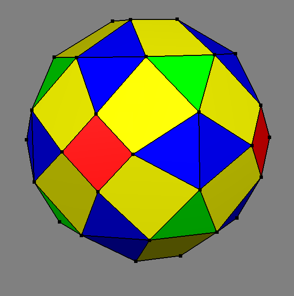 The above displayed vertex figure can be considered as an external blend of a scaled tic with 6 non-scaliform variants of squacues. Obviously these caps could well be re-attached in a gyrated way too. This then provides a different hyperbolic honeycomb too, but with sllightly different incidences: those of type B.