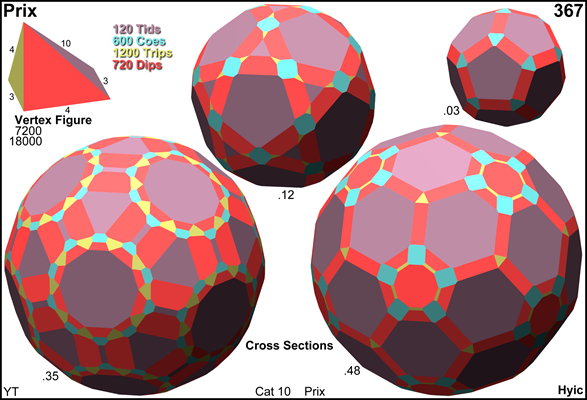 x3o3x5x . . . . | 7200 | 2 2 1 | 1 2 2 1 2 | 1 1 2 1 --------+------+----------------+--------------------------+----------------- x . . . | 2 | 7200 * * | 1 1 1 0 0 | 1 1 1 0 . . x . | 2 | * 7200 * | 0 1 0 1 1 | 1 0 1 1 . . . x | 2 | * * 3600 | 0 0 2 0 2 | 0 1 2 1 --------+------+----------------+--------------------------+----------------- x3o . . | 3 | 3 0 0 | 2400 * * * * | 1 1 0 0 x . x . | 4 | 2 2 0 | * 3600 * * * | 1 0 1 0 x . . x | 4 | 2 0 2 | * * 3600 * * | 0 1 1 0 . o3x . | 3 | 0 3 0 | * * * 2400 * | 1 0 0 1 . . x5x | 10 | 0 5 5 | * * * * 1440 | 0 0 1 1 --------+------+----------------+--------------------------+----------------- x3o3x . ♦ 12 | 12 12 0 | 4 6 0 4 0 | 600 * * * x3o . x ♦ 6 | 12 0 6 | 2 0 3 0 0 | * 1200 * * x . x5x ♦ 20 | 10 10 10 | 0 5 5 0 2 | * * 720 * . o3x5x ♦ 60 | 0 60 30 | 0 0 0 20 12 | * * * 120 snubbed forms: β3o3x5x, x3o3β5x, x3o3x5β, β3o3β5x, β3o3x5β, x3o3β5β, β3o3β5β