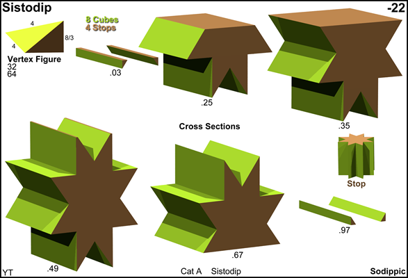 As abstract polychoron sistodip is isomorphic to sodip, thereby replacing the octagrams by octagons, resp. replacing stop by op.