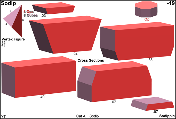x4o x4x . . . . | 32 | 2 1 1 | 1 2 2 1 | 1 1 2 --------+----+----------+-----------+------ x . . . | 2 | 32 * * | 1 1 1 0 | 1 1 1 . . x . | 2 | * 16 * | 0 2 0 1 | 1 0 2 . . . x | 2 | * * 16 | 0 0 2 1 | 0 1 2 --------+----+----------+-----------+------ x4o . . | 4 | 4 0 0 | 8 * * * | 1 1 0 x . x . | 4 | 2 2 0 | * 16 * * | 1 0 1 x . . x | 4 | 2 0 2 | * * 16 * | 0 1 1 . . x4x | 8 | 0 4 4 | * * * 4 | 0 0 2 --------+----+----------+-----------+------ x4o x . ♦ 8 | 8 4 0 | 2 4 0 0 | 4 * * x4o . x ♦ 8 | 8 0 4 | 2 0 4 0 | * 4 * x . x4x ♦ 16 | 8 8 8 | 0 4 4 2 | * * 4 snubbed forms: s4o2s4x