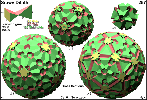 As abstract polytope srawv ditathi is isomorphic to gwav ditathi, thereby replacing pentagrams by pentagons, and decagons by decagrams, respectively gid by id, tid by quit gissid, and sidditdid by gidditdid. – As such srawv ditathi is a lieutenant.